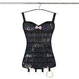Brand : Umbra ,Model : 299037-040We live in a world where storage space is constantly shrinking. The Little Black Corset jewelry organizer from Umbra is a super-thin, double-sided storage solution perfect for today's fashionista. Store jewelry, cosmetics, hair accessories, and all of life's curiosities. 23 clear pockets on one side hold earrings, rings, watches and other small items. On the reverse, 20 hook-and-loop tabs accommodate long necklaces (no more tangles.), chunky bracelets, headbands and belts. The metal hanger with swiveling head hangs on a closet pole or an over-the-door or wall hook (not included) and provides easy access to both sides of the organizer. With a quick flip, contents are visible at a glance. Measures 18-3/4-inch long by 8-inch wide. Need more storage space? Check out this item's larger cousin, the Little Black Dress jewelry organizer also by Umbra. Patent pending design by Sung Wook Park and Marcee Ruby for Umbra - the worldwide leader in innovative, casual, contemporary and affordable design for the home.