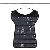 Brand : Umbra ,Model : 299036-040We live in a world where storage space is constantly shrinking. The Little Black Tee jewelry organizer from Umbra is a super-thin, double-sided storage solution perfect for today's fashionista. Store jewelry, cosmetics, hair accessories, and all of life's curiosities. 28 clear pockets on one side hold earrings, rings, watches and other small items. A mesh panel at the "neck" provides additional earring storage. On the reverse, 19 hook-and-loop tabs accommodate long necklaces (no more tangles.), chunky bracelets, headbands and belts. The metal hanger with swiveling head hangs on a closet pole or an over-the-door or wall hook (not included) and provides easy access to both sides of the organizer. With a quick flip, contents are visible at a glance. Measures 17-1/2-inch long by 12-1/4-inch wide. Need more storage space? Check out this item's larger cousin, the Little Black Dress jewelry organizer also by Umbra. Patent pending design by Matt Carr and Sung Wook Park for Umbra - the worldwide leader in innovative, casual, contemporary and affordable design for the home.